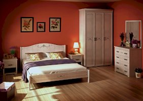Двуспальная кровать из коллекции «Афродита» привнесет в Вашу спальную комнату легкость и очарование прованса. Простая и при этом утонченная, она создаст романтичное настроение и воздушный облик Вашей спальни. Обрамление на спинке и подножии кровати в виде элегантного декора придает дополнительную изящность, а простые ножки не утяжеляют ее внешний вид.
