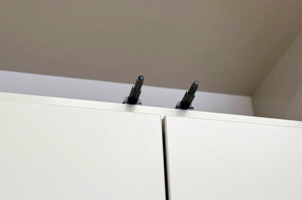 Особое внимание заслуживает фрезеровка фасадов, которая придаёт антресоли изысканный вид. Толкатели PUSH вместо ручек обеспечивают удобное открывание нажатием.