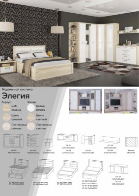 Модульная спальня Элегия Ясень шимо светлый/Лиственница светлая (PDM)